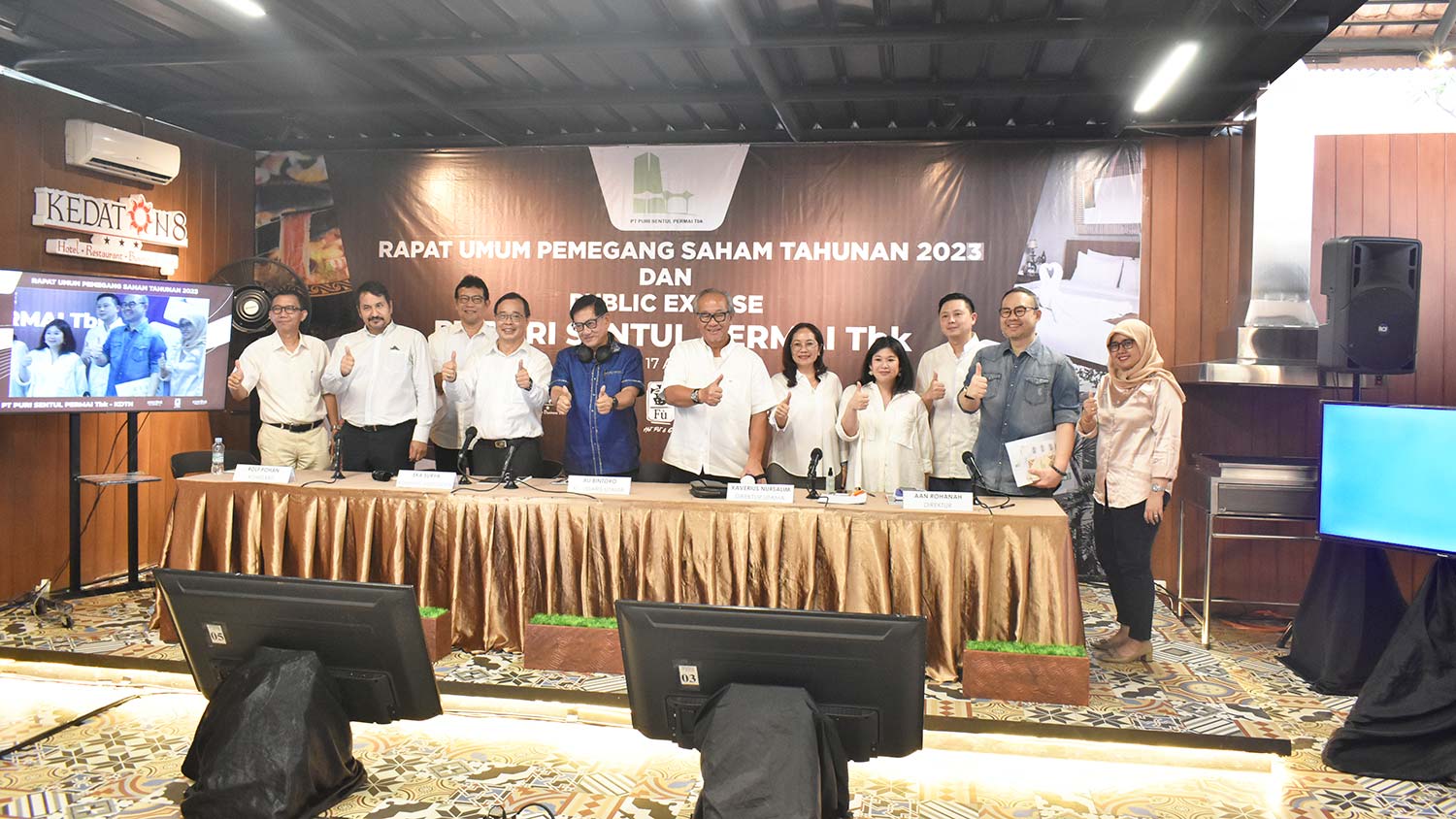 PT Puri Sentul Permai Tbk dengan kode saham KDTN, laksanakan RUPST Tahun buku 2022. Berlokasi di Hotel milik Perseroan Kedaton 8 Hotel - Sentul, Rapat Umum Pemegang Saham Tahunan (RUPST) ini lengkap dihadiri oleh Jajaran Dewan Komisaris, Dewan Direksi serta Para Pemegang Saham.